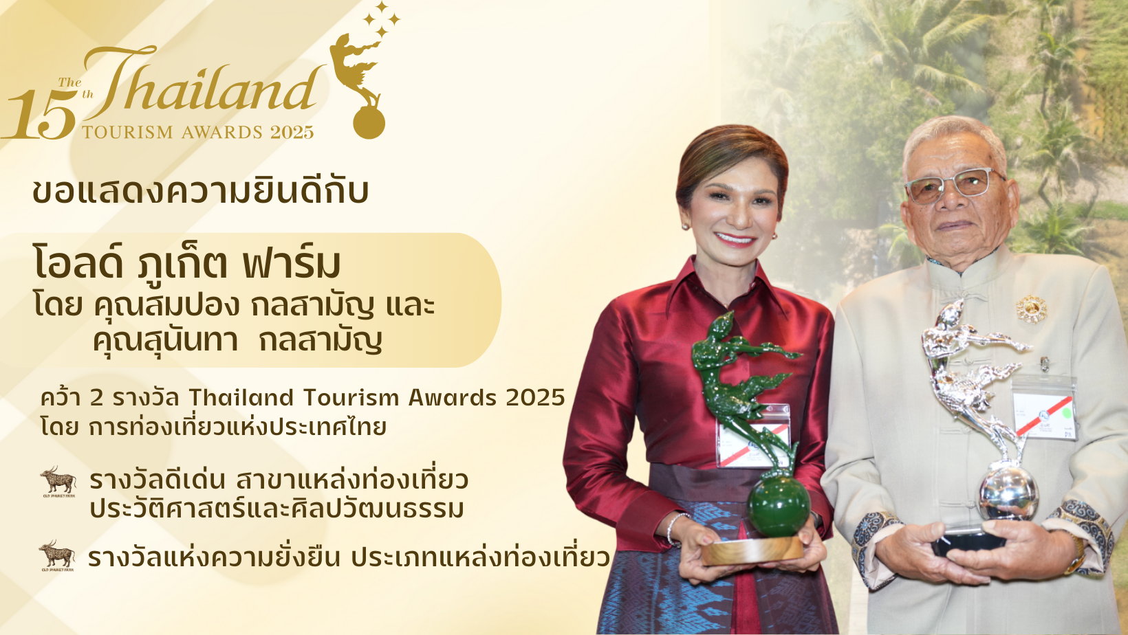 ✨ Highlight of the Year! ✨ Old Phuket Farm proudly received the Award of Excellence and the Sustainability Award at the 15th Thailand Tourism Awards.